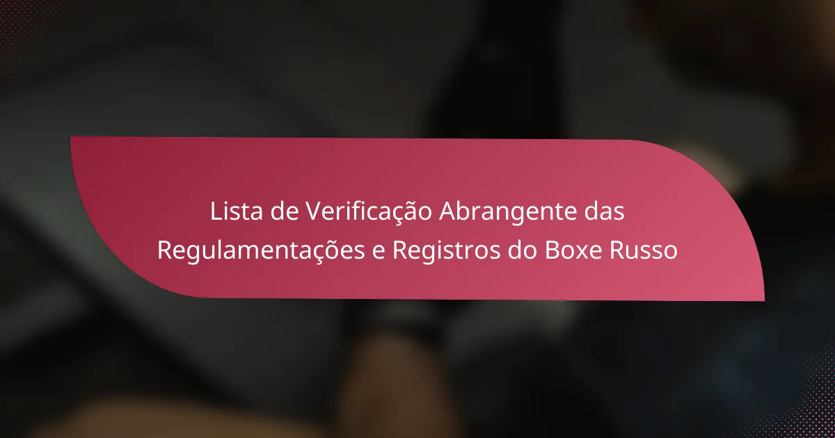Esta lista de verificação abrangente descreve as principais regulamentações e registros do boxe na Rússia, governados pela Federação Russa de Boxe de acordo com os padrões internacionais. Inclui informações essenciais sobre regras de competição, protocolos de segurança e elegibilidade dos atletas, além de destacar a rica história do boxe russo por meio de seus registros e conquistas notáveis.