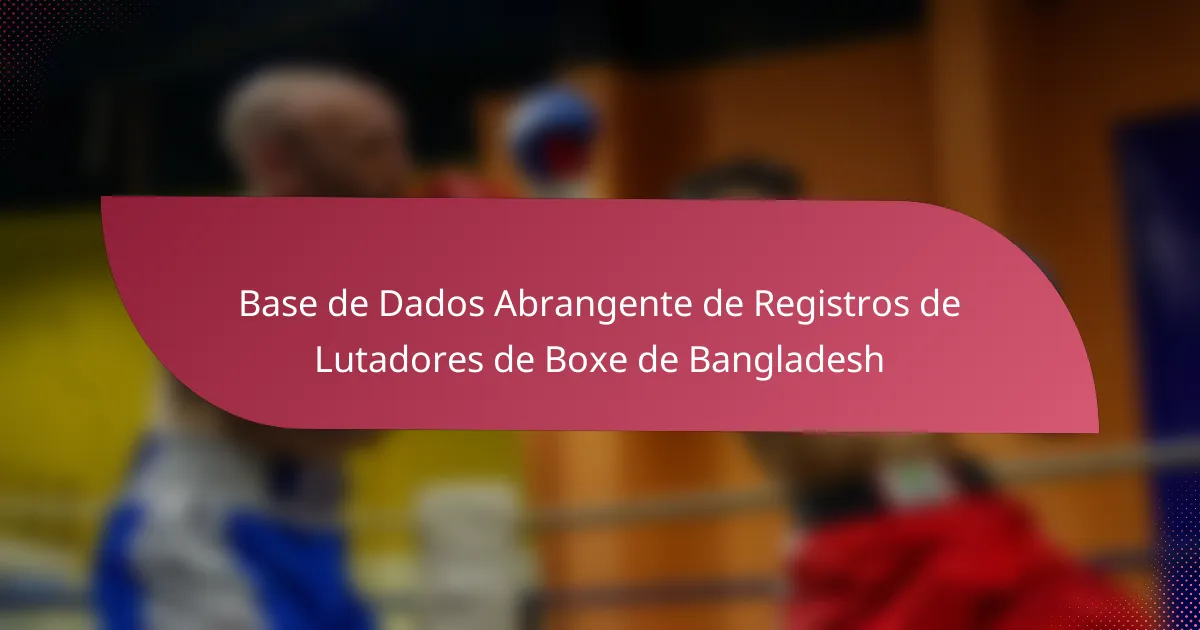 Os registros de lutadores de boxe de Bangladesh abrangem informações essenciais que rastreiam a carreira de um boxeador, incluindo detalhes pessoais, estatísticas de lutas e conquistas. Esses registros são cruciais para avaliar o desempenho e o legado de um lutador dentro do esporte.
