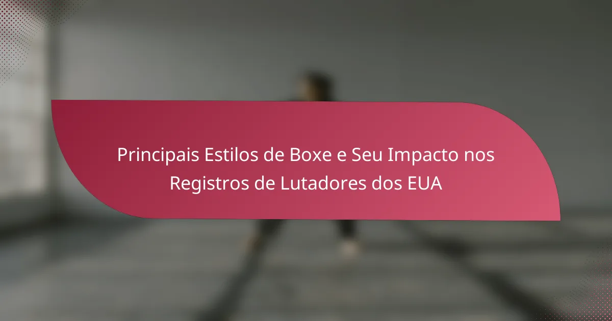 Os principais estilos de boxe incluem ortodoxo, canhoto e switch-hitter, cada um caracterizado por posturas e técnicas únicas. Compreender esses estilos é crucial para analisar o desempenho e a estratégia dos lutadores no ringue.